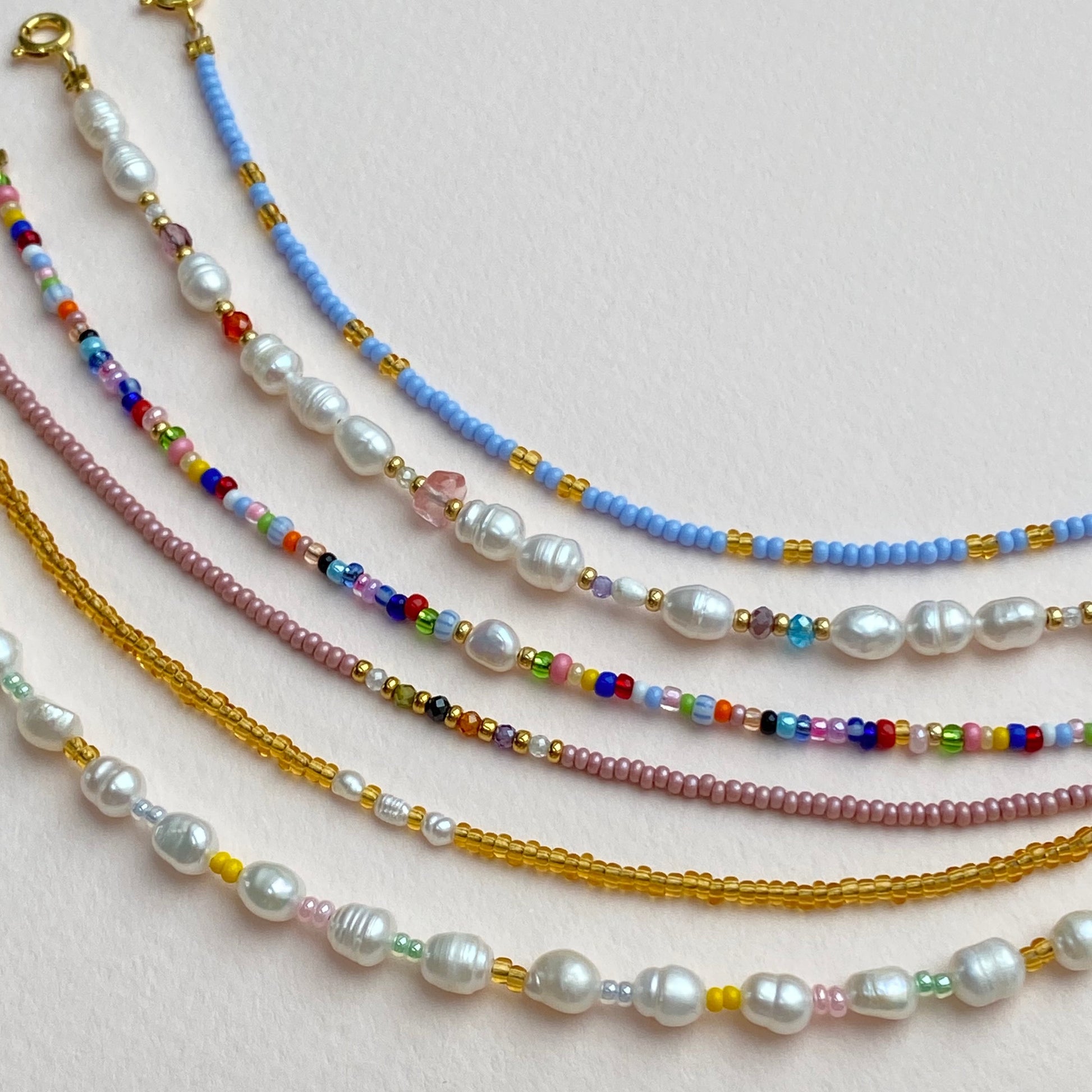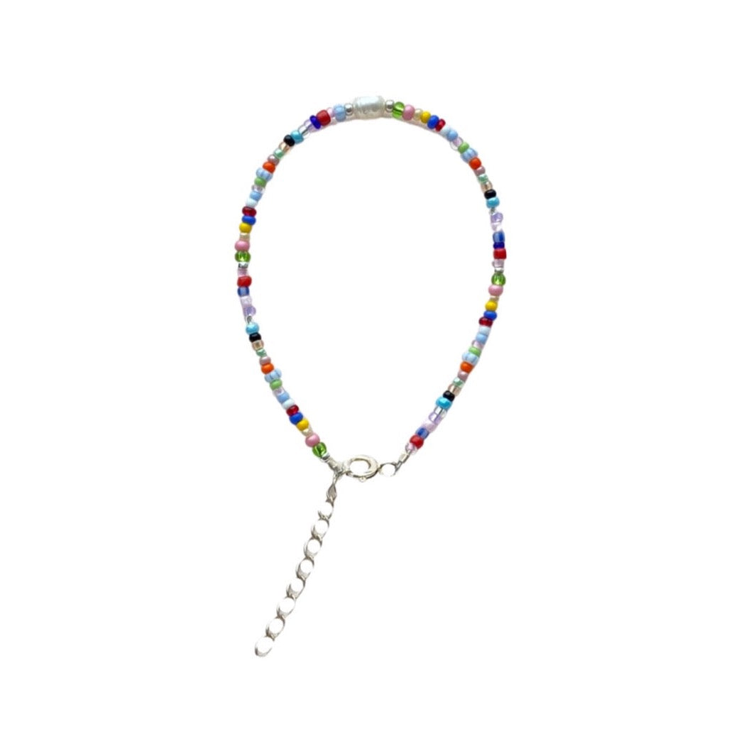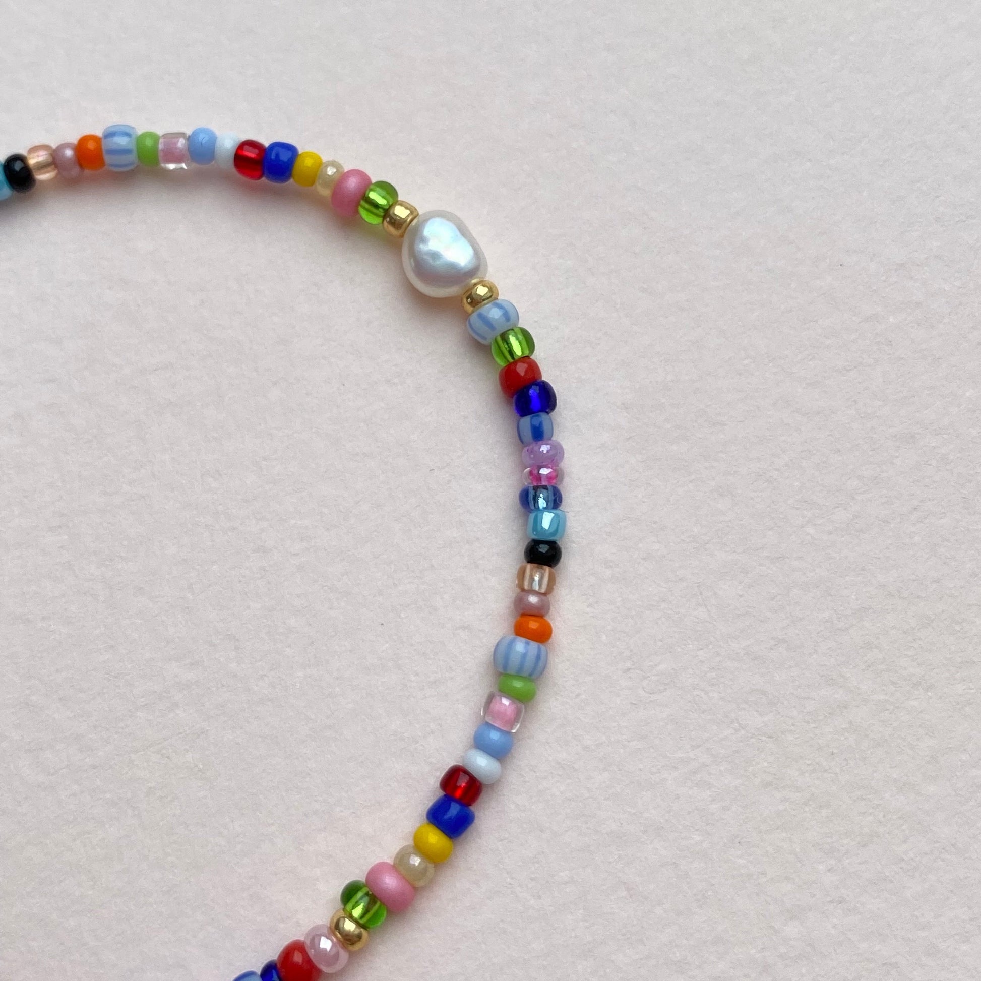 The multi bracelet is a beautiful and colorful bracelet made of seed beads and a small freshwater pearl in the middle. It is perfect to pair with the Summer necklace or Favorite necklace.