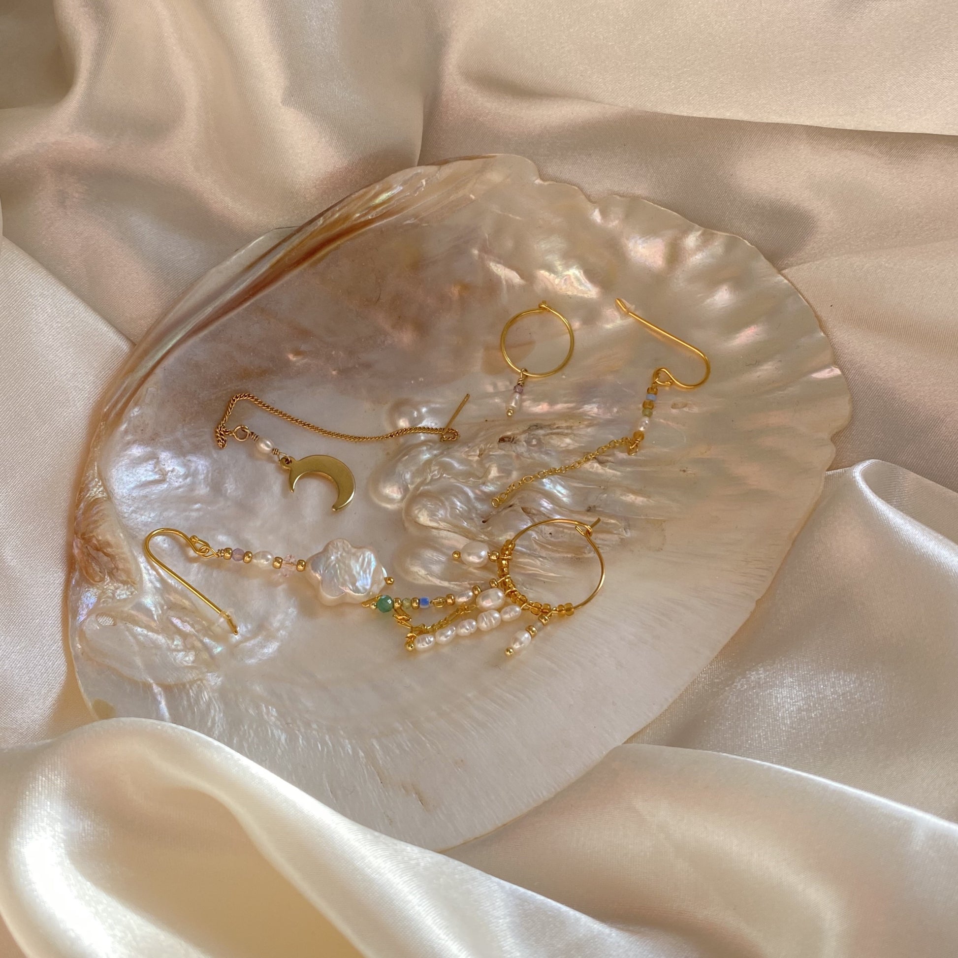 To protect your jewelry, we always recommend to avoid contact with water of all forms. Avoid spraying perfume or applying creams directly to the jewelry. We also recommend storing your jewelry in a safe space to help avoid breakage, scratching or tangling. Likewise, avoid storing your jewelry in direct sunlight. Instead we would recommend storing your jewelry in a closed box or a soft pouch. When purchasing a set of By Alma Nielsen earrings, you will receive a customized By Alma Nielsen jewelry box which is a perfect storage option for your jewelry.
